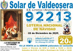 Ya está a la venta la lotería de Navidad del Solar de Valdeosera.
